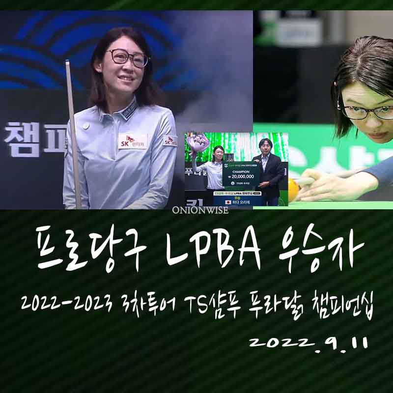 9월 11일 자정을 넘긴 시각에 TS샴푸 푸라닭 LPBA챔피언십 우승자가 세계 여자 당구의 살아있는 전설, 히다 오리에 선수로 결정 되었습니다. 한편 9월 5일 128강 서바이벌 3쿠션 경기를 시작으로 진행된 프로당구 2022-23 시즌 3차 투어, TS샴푸 푸라닭 LPBA 챔피언십 대회는새로운 LPBA투어 챔피언, 히다 오리에를 탄생시키면서 끝이 났습니다. 오늘은 TS샴푸 푸라닭 LPBA 챔피언십 우승자 히다 오리에 (결승전 경기결과)를 정리하였습니다.