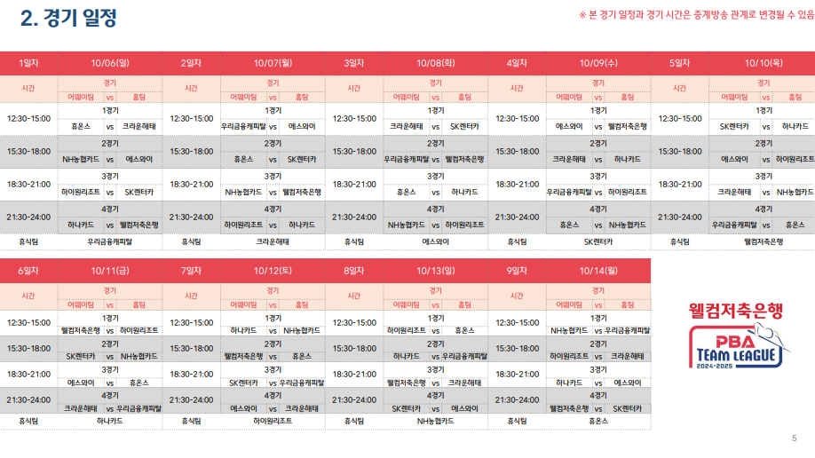 웰컴저축은행 PBA 팀리그 2024-2025 제3라운드 대회 소개