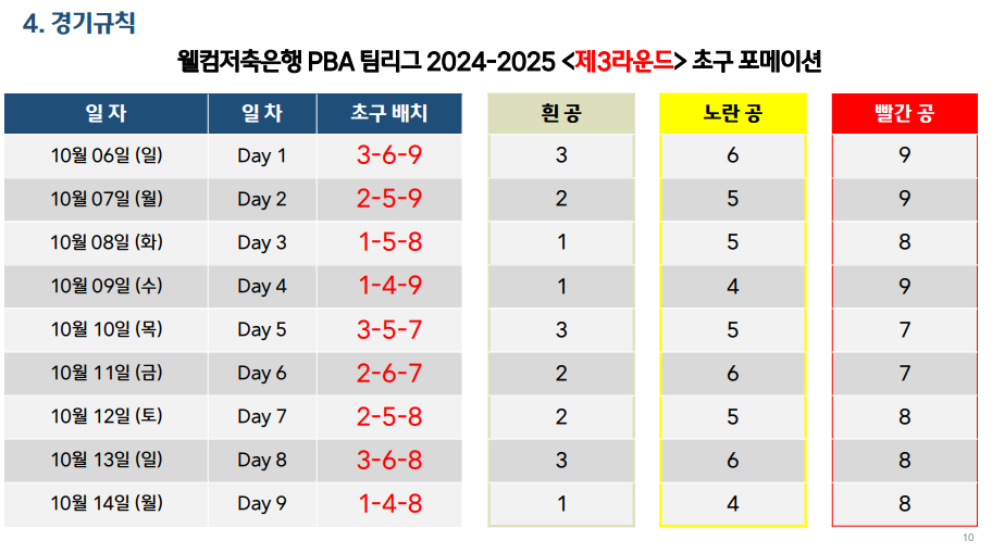 안녕하세요, 여러분! 😊 오늘은 많은 분들이 기다리시는 웰컴저축은행 PBA 팀리그 2024-2025 제3라운드 대회요강의 주요 내용을 정리하여 소개해 드리려고 합니다. 이번 대회는 2024년 10월 6일부터 14일까지 고양 킨텍스 PBA 스타디움에서 개최됩니다. 총 9일 동안 진행되는 이번 라운드에서는 각 팀들이 치열한 경쟁을 펼치며 우승을 향해 나아가게 되는데요, 그 열기와 박진감이 넘치는 현장을 미리 살펴보겠습니다. 🏆