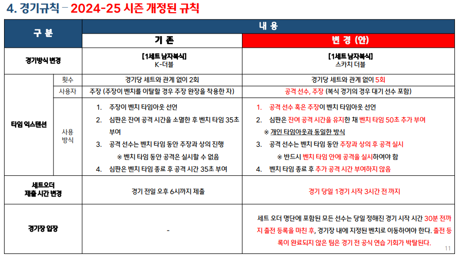 - 남자 단식: 11점제