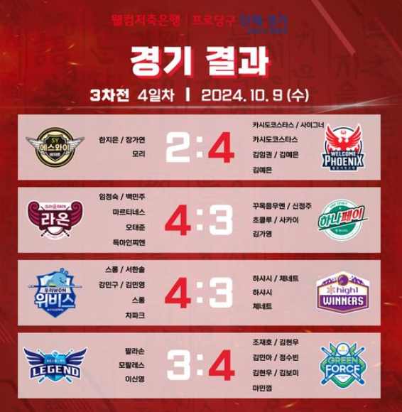 PBA 팀리그 3라운드 4일차 경기결과