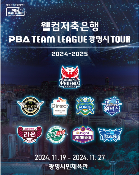 | 웰컴저축은행 PBA 팀리그 2024-2025 광명시 투어 4라운드 대회 요강 (0) | 2024.11.15 |
