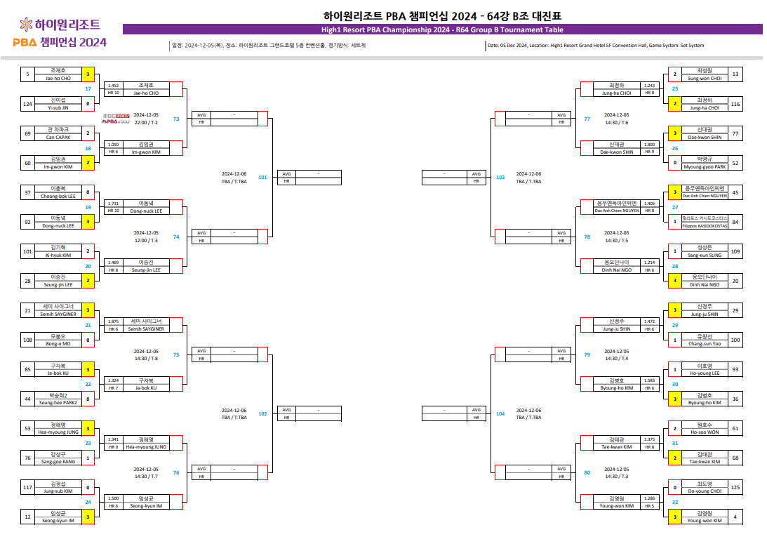 2. 하이원리조트 PBA 챔피언십 64강 대진표