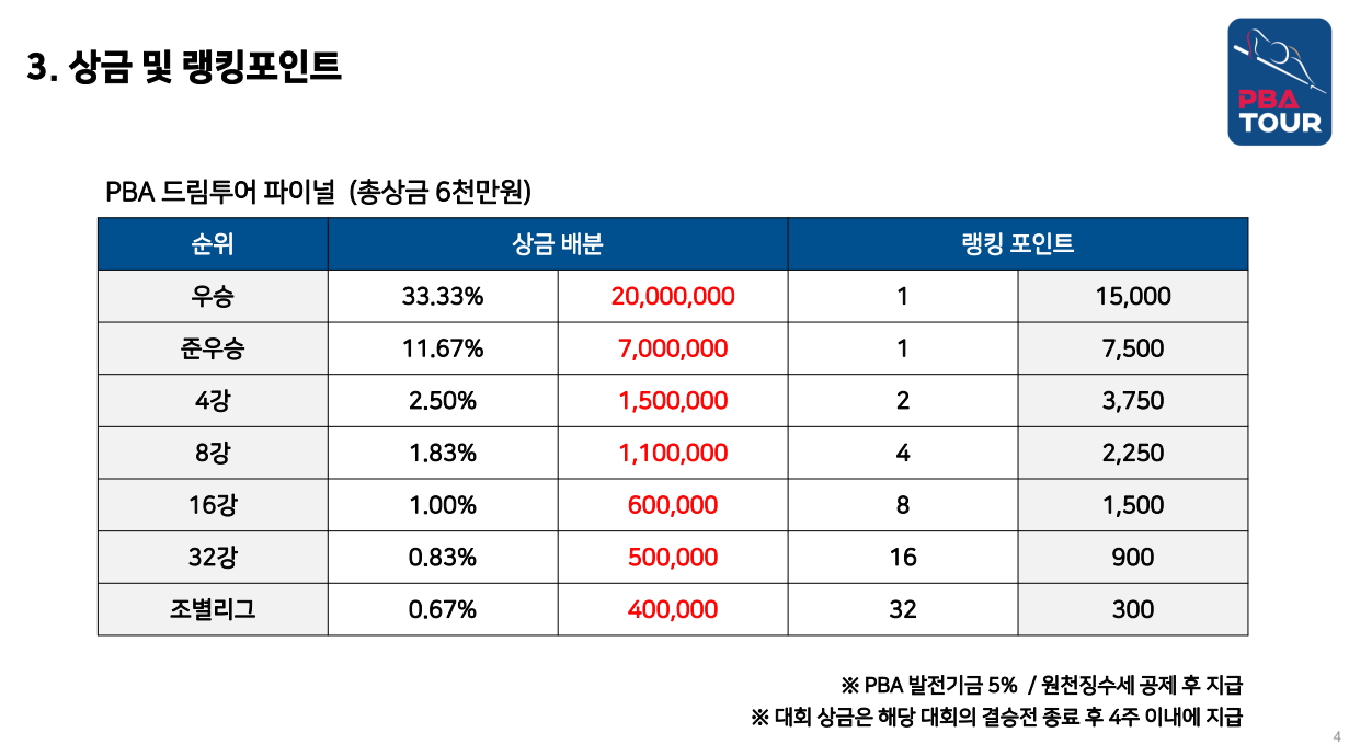 3. 상금 및 랭킹 포인트