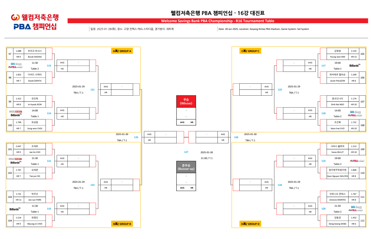 2. 웰컴저축은행 PBA 챔피언십 16강 대진표