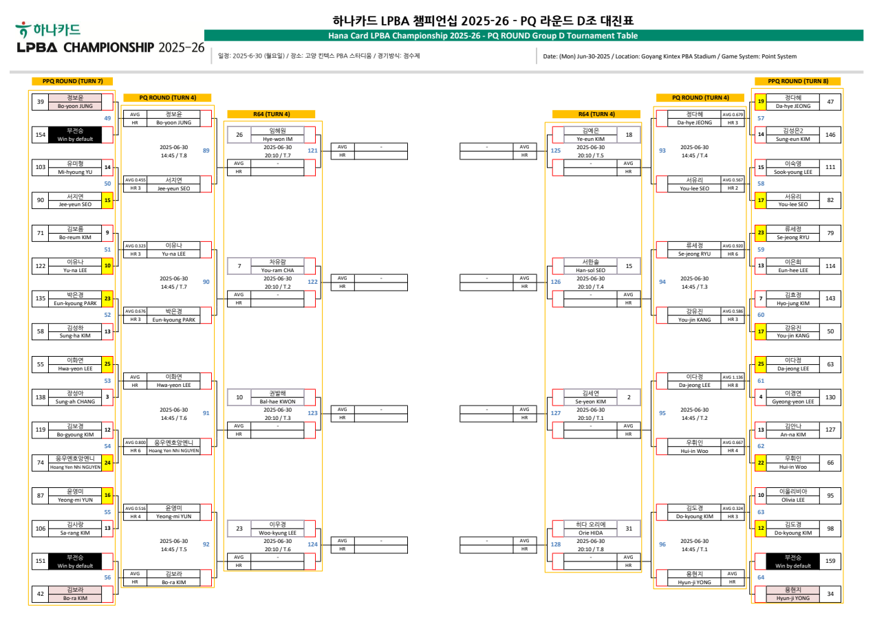 하나카드 LPBA PQ 라운드 D조 대진표 (2025-26 시즌)