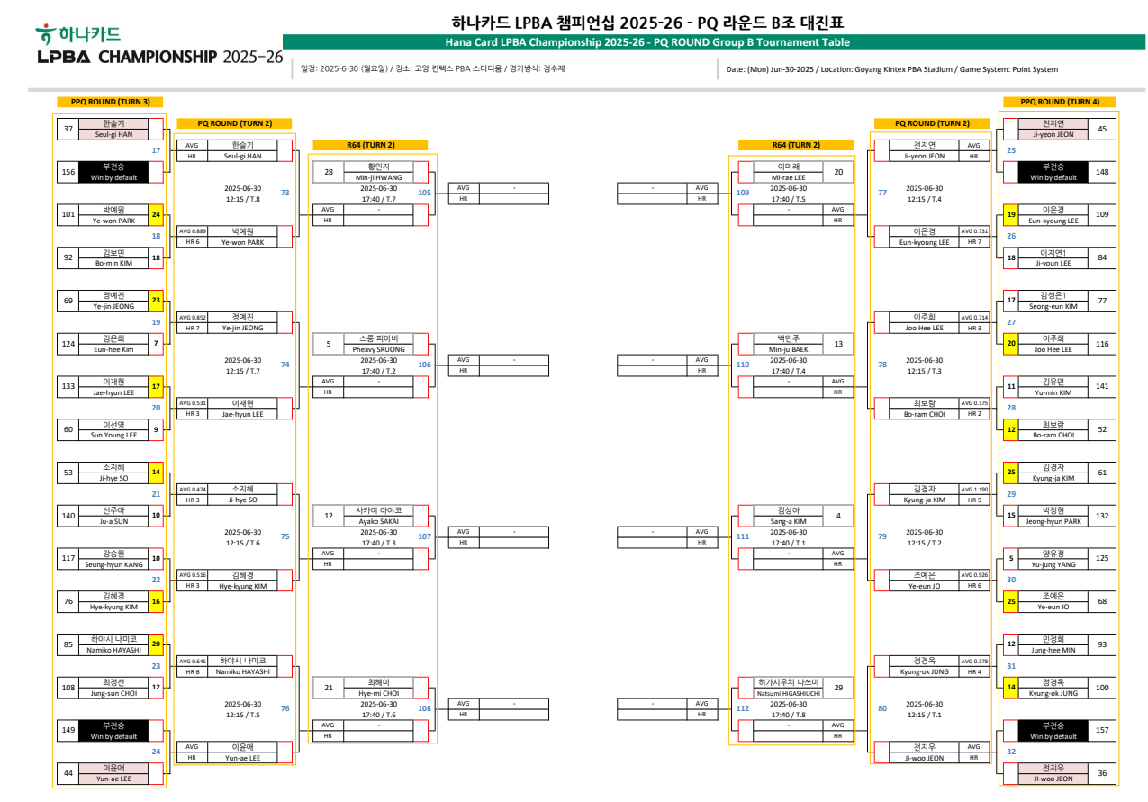 하나카드 LPBA PQ 라운드 B조 대진표 (2025-26 시즌)