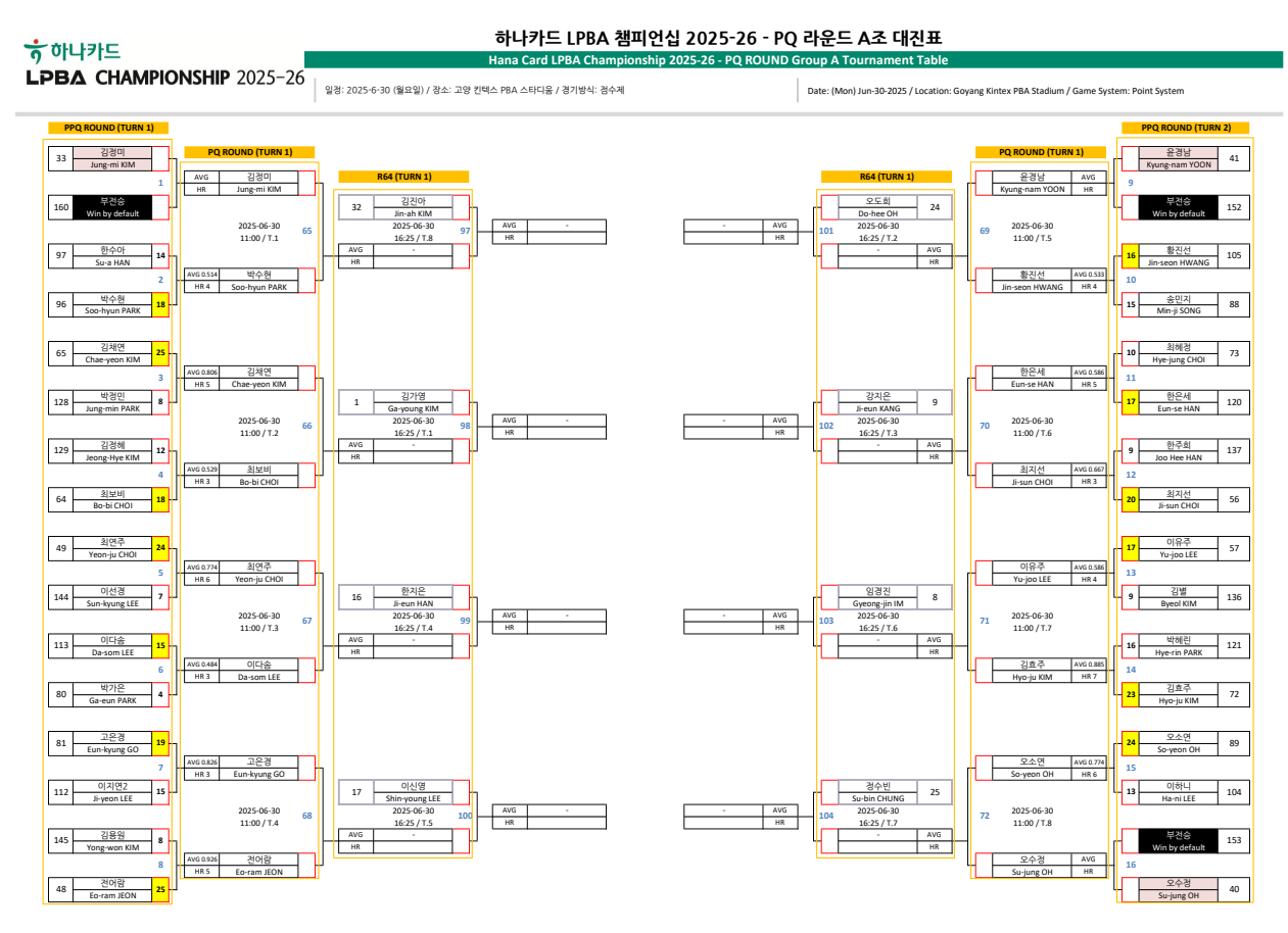 하나카드 LPBA PQ 라운드 A조 대진표 (2025-26 시즌)