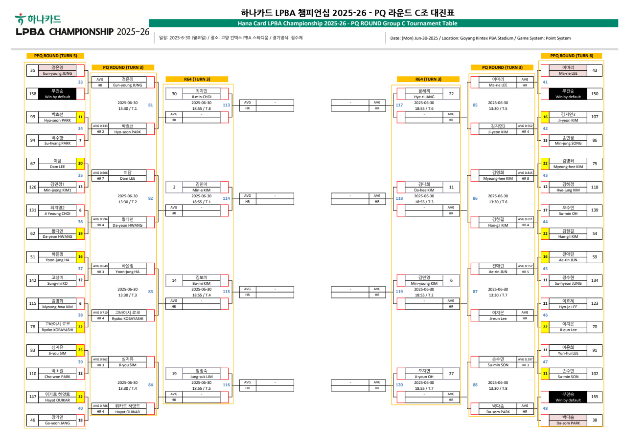 하나카드 LPBA PQ 라운드 C조 대진표 (2025-26 시즌)