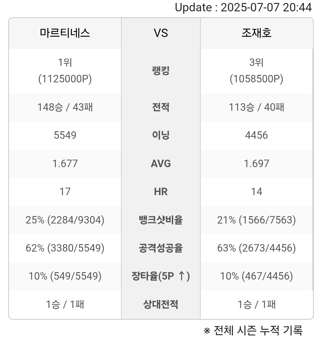 이번대회에서는 다비트 마르티네스의 기세가 조금 더 좋은 듯하지만, 조재호 선수가 좋은 경기력이 살아난다면 마르티네스도 쉽게 막을 수 없을 것입니다.