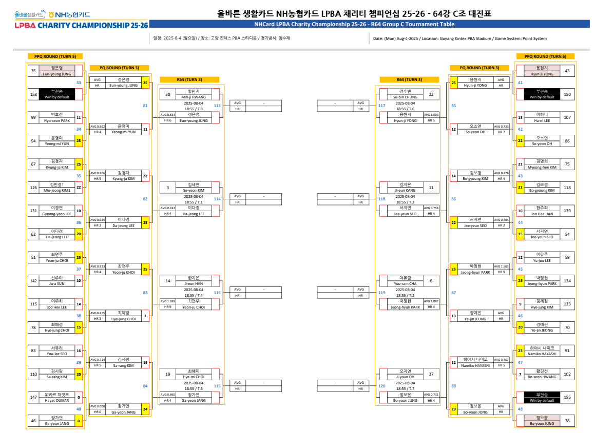| NH농협카드 LPBA 채리티 챔피언십 25-26 - PPQ 라운드 대진표 (3) | 2025.08.02 |