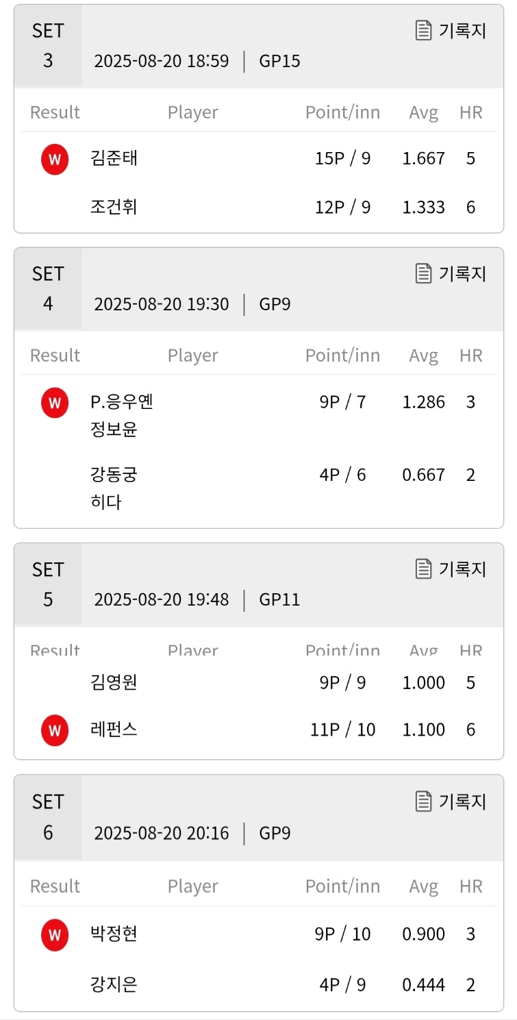 | 2025-26시즌 PBA 팀리그 2라운드 2일차 경기결과 순위 - 4위 하이원리조트 당구팀 (2) | 2025.08.19 |