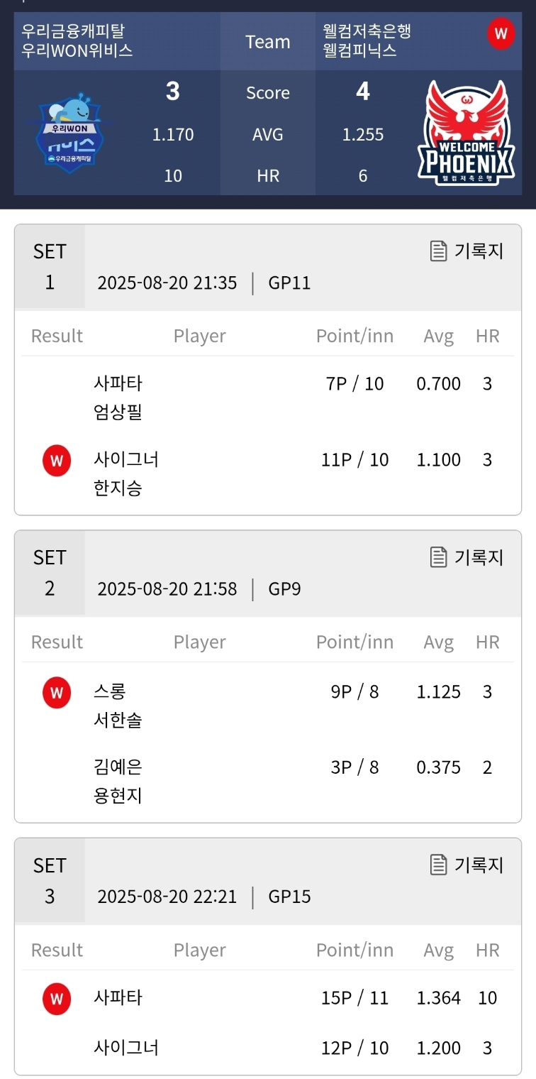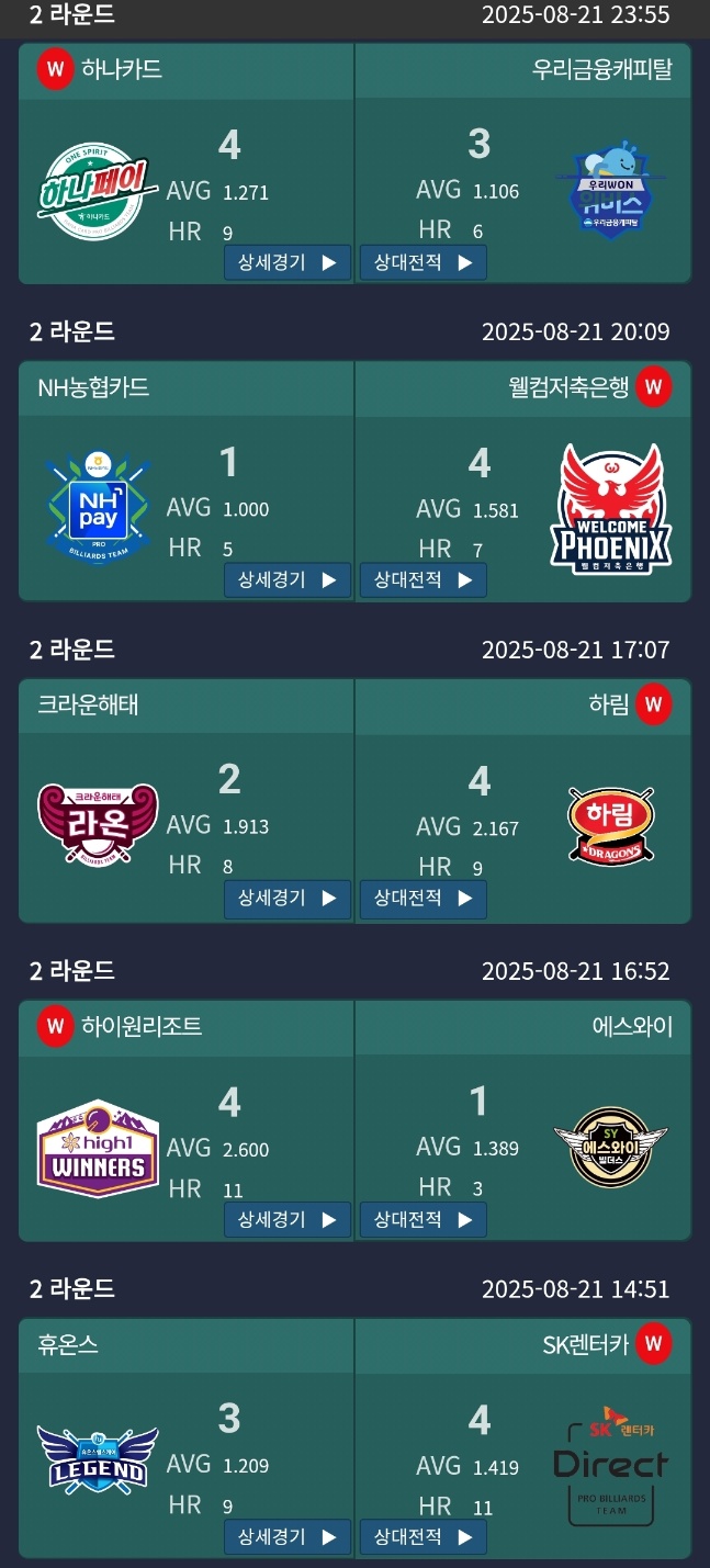 | 2025-26시즌 PBA 팀리그 2라운드 2일차 경기결과 순위 - 4위 하이원리조트 당구팀 (2) | 2025.08.19 |