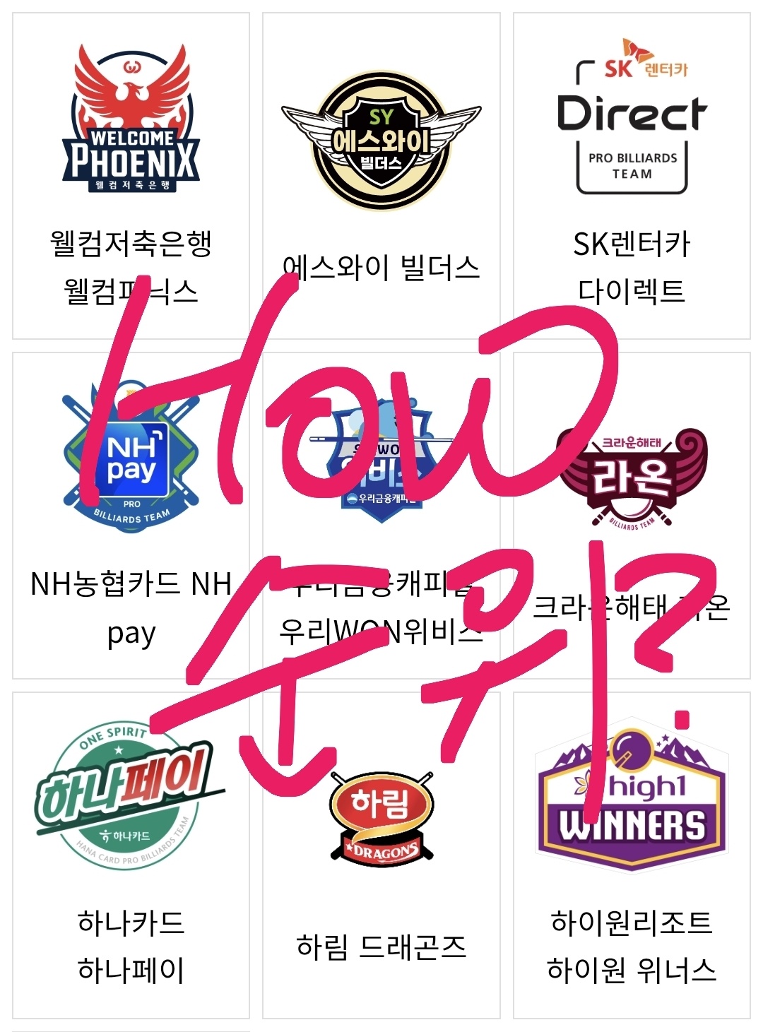 얼마전 당구팬 이웃임의 질문을 받았습니다. "팀리그 승패는 같은데 팀 순위가 다른 이유는 무엇인가요? 알고 싶습니다." 아하! 많은 분들이 모르고 계실 것 같아서 PBA팀리그에서 경기결과 순위를 정하는 방법, 즉 환산방 법에 대하여 정리해서 드립니다.