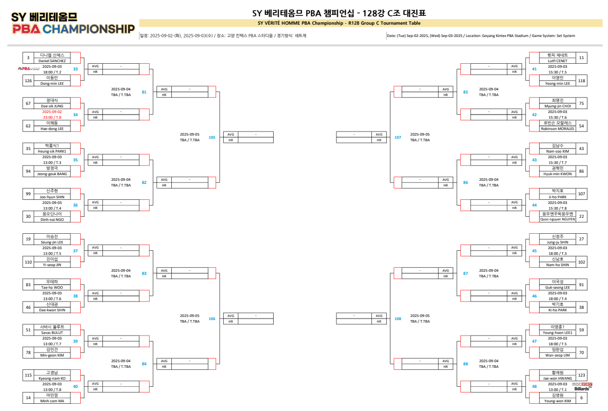 SY 베리테옴므 PBA 챔피언십 128강 C조 대진표