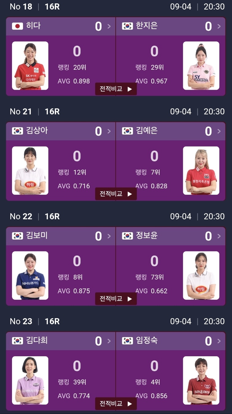 | SY 베리테옴므 LPBA 챔피언십 16강 대진표 - 32강 1일차 경기결과 (3) | 2025.09.02 |