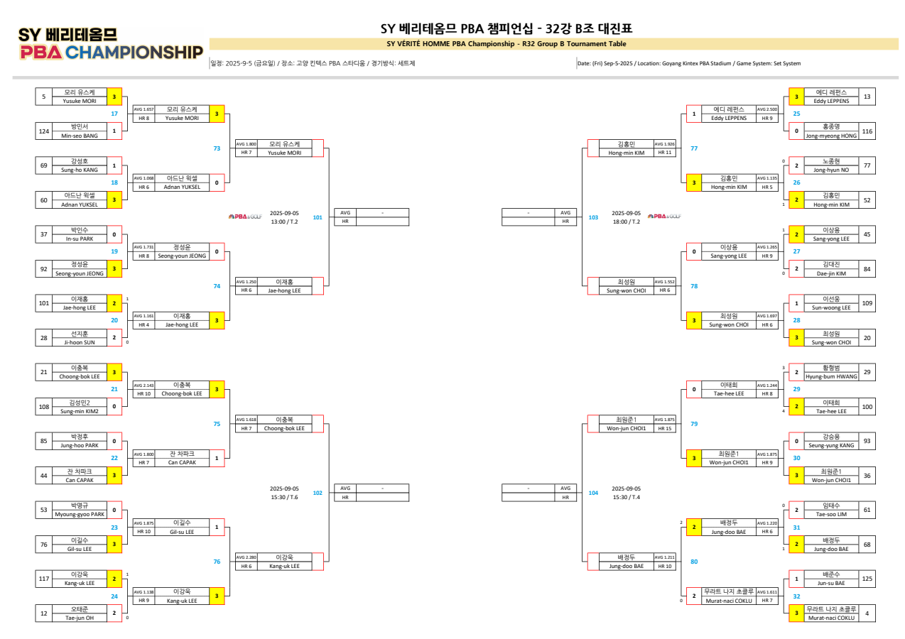 2. SY 베리테옴므 PBA 챔피언십 32강 대진표
