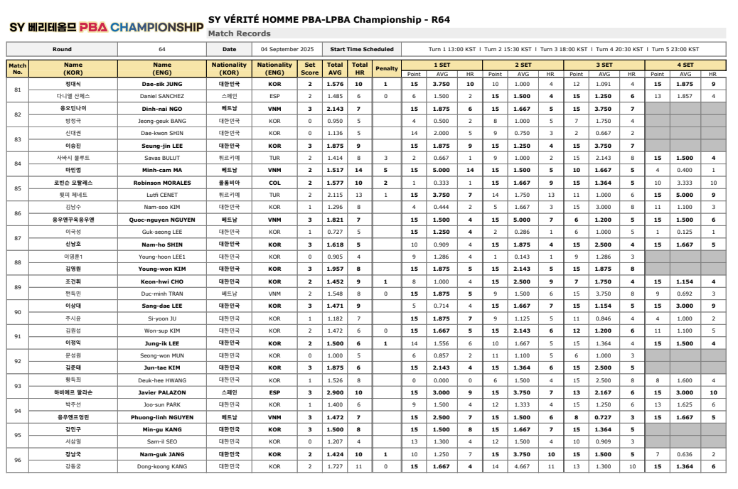 1. SY 베리테옴므 PBA 챔피언십 64강 경기결과