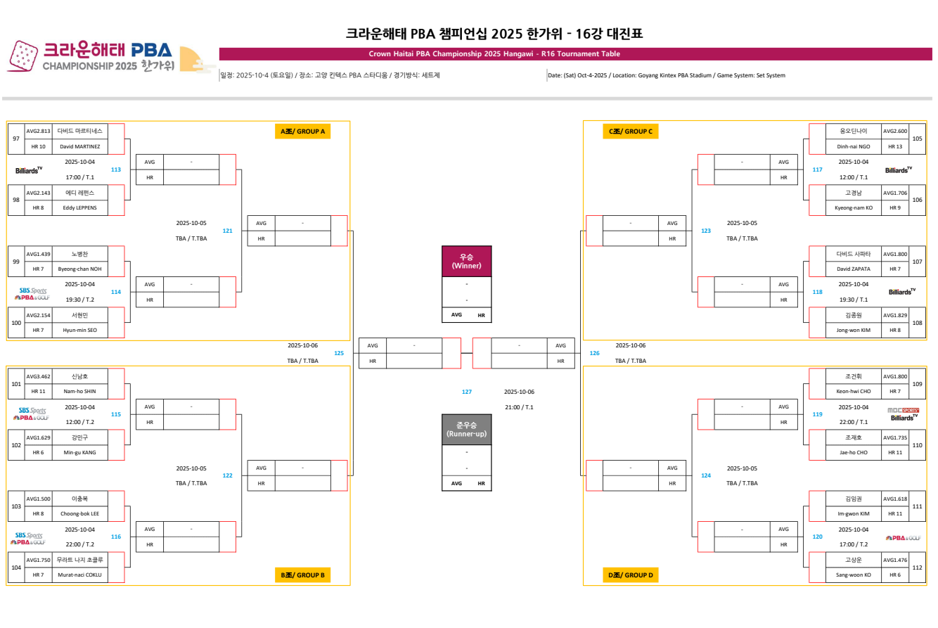 2. 크라운해태 PBA 챔피언십 2025 한가위 16강 대진표