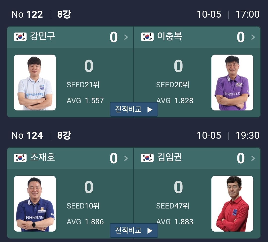 그러고 보니, PBA 챔피언 출신 4명 VS 비챔피언 4명의 대결이기도합니다. PBA 프로당구 무대를 주름 잡았던 스페인 당구선수들이 우수수 탈락을 하고 벨기에와 베트남 당구선수 각각 1명씩만 살아 남았습니다.