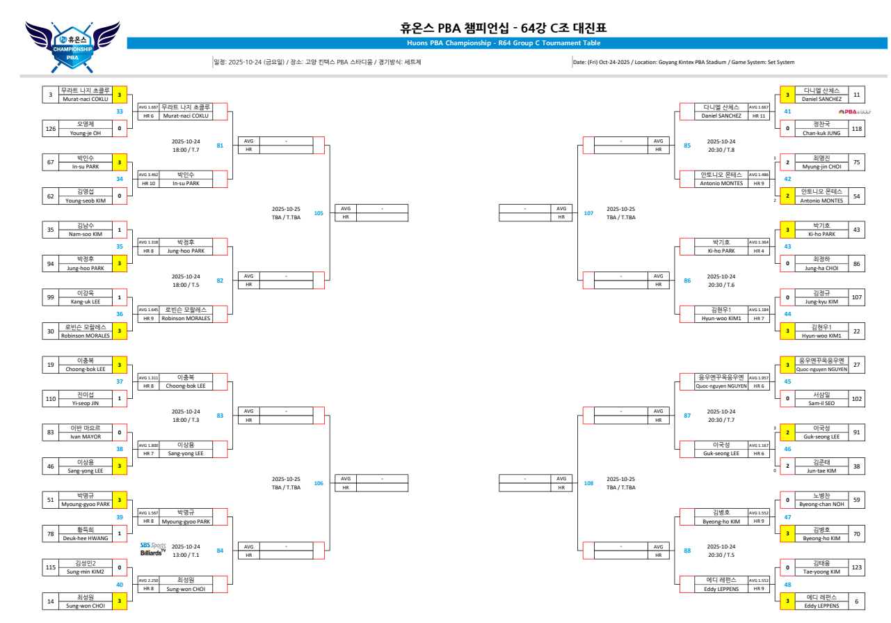 휴온스 PBA 챔피언십 64강 대진표 (1)