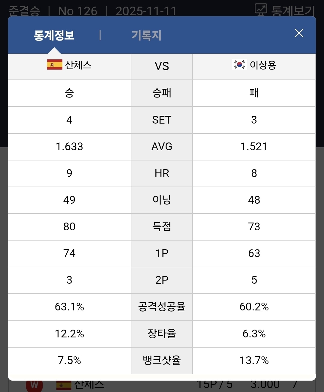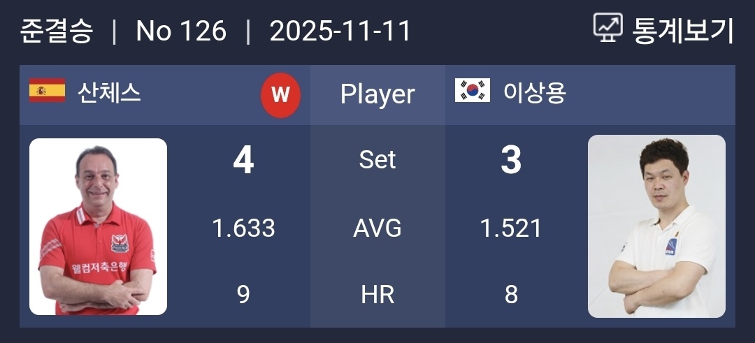 산체스 vs 이상용 4강 준결승 기록과 데이터 비교