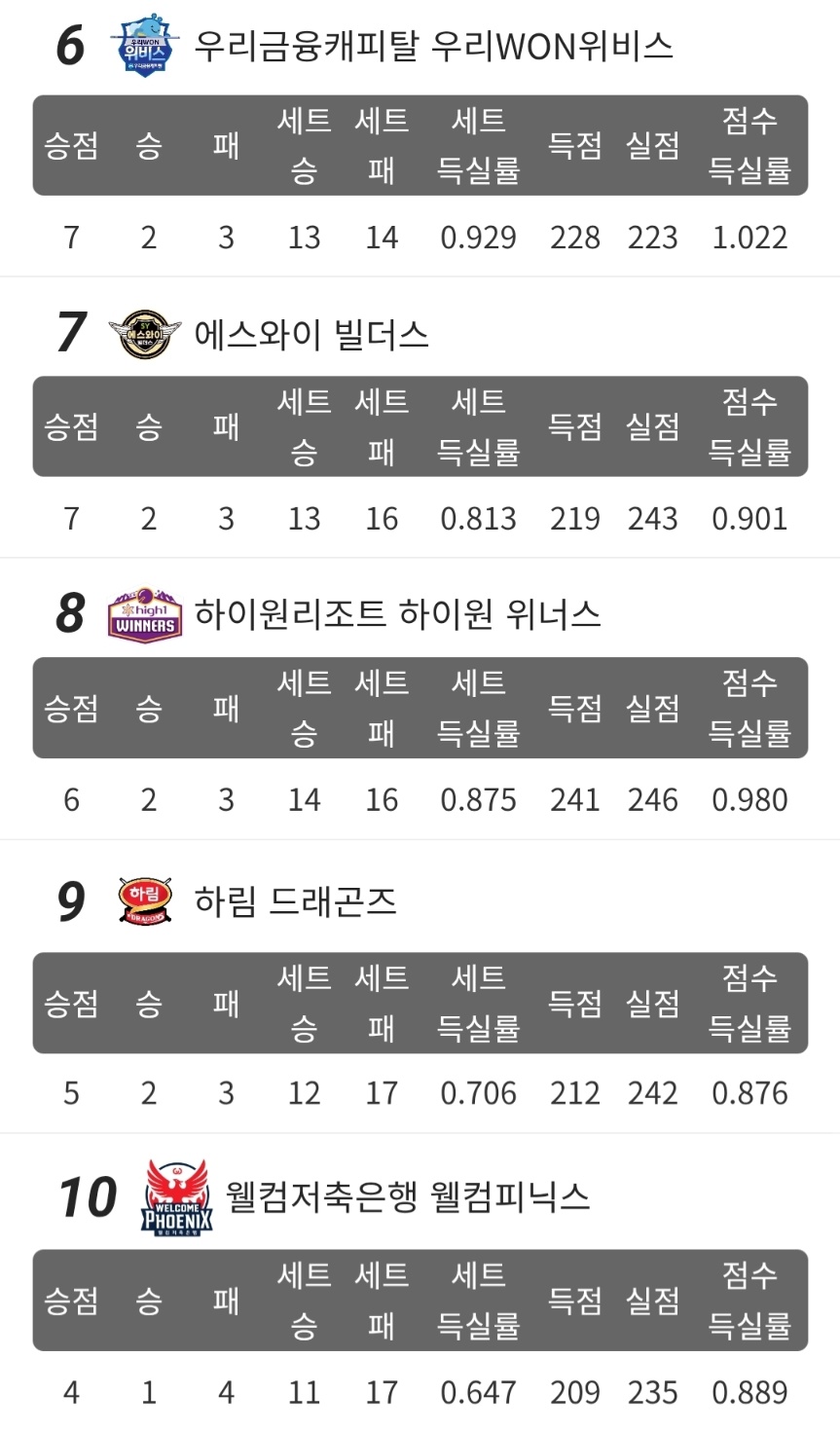 하위권에서 중요한 한 판이었던 우리금융캐피탈 우리WON위비스와 에스와이 빌더스의 경기에서는 우리금융캐피탈이 4대 0으로 승리하며 귀중한 승점 3점을 챙겼습니다. 전날의 패배를 빠르게 털어내고 전 세트를 가져오며 저력을 보여드렸습니다.