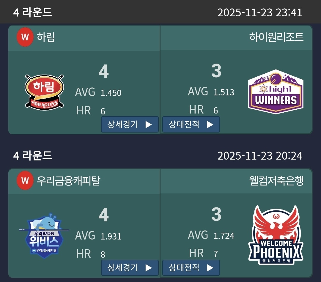하프타임 이후 펼쳐진 경기에서는 하림이 하이원리조트를 4대 3으로 꺾으며 귀중한 승점을 추가했고, 우리금융캐피탈도 웰컴저축은행을 4대 3으로 누르며 안정적인 경기 흐름을 이어갔습니다.