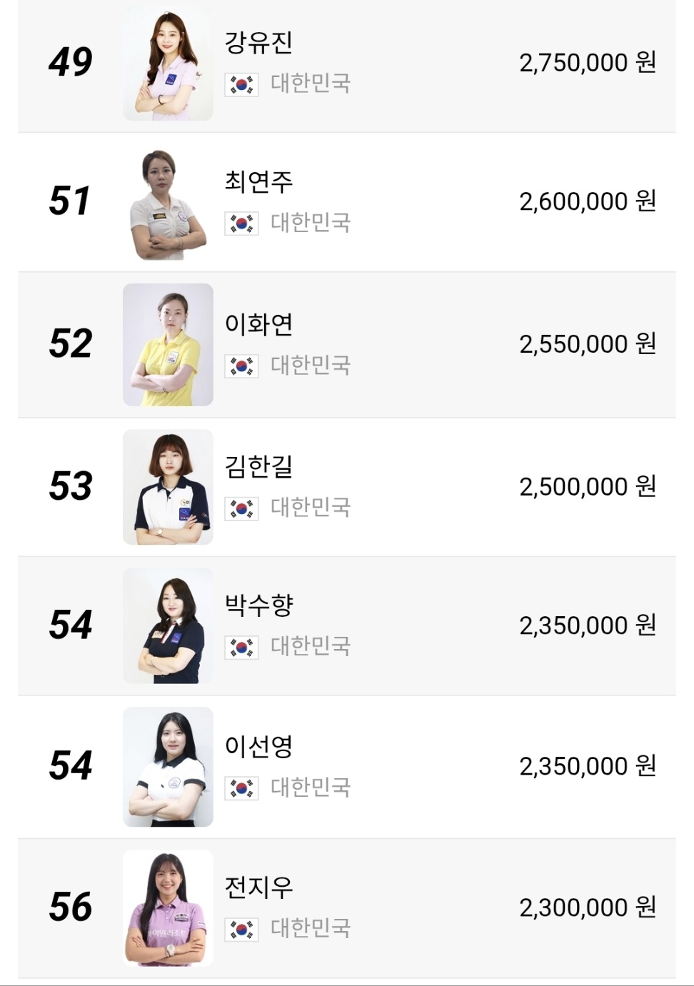 LPBA 상금 랭킹으로 보는 여자 프로당구 선수 순위한국 프로당구는 2019년 6월 출범 이후 남자 PBA와 함께 여자 투어인 LPBA를 운영하며 세계 여자 3쿠션 무대를 빠르게 키워 왔습니다. 현재 진행 중
