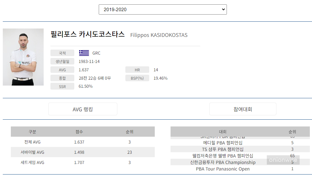 필리포스 카시도코스타스 국적 나이 프로필 - PBA 우승횟수 상금 랭킹