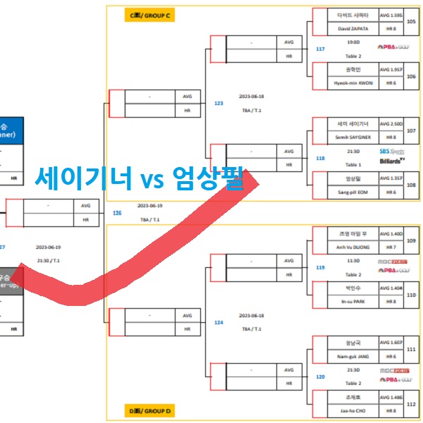 | 세미 세이기너 vs 박남수 경주 블루원리조트 PBA 32강 대진표 (2) | 2023.06.16 |