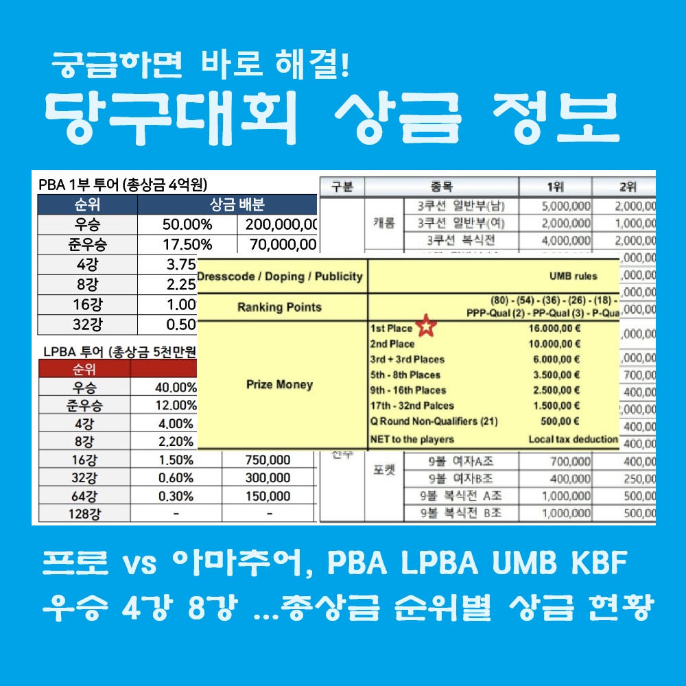 ■ PBA 프로 vs UMB, KBF 아마추어 당구대회 상금차이