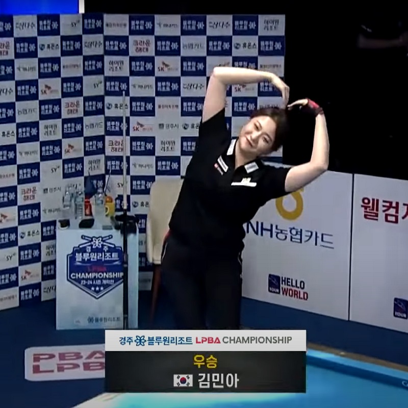 김민아 선수는 이로써 자신의 두번째 LPBA 챔피언십 우승컵을 들어 올렸습니다.
