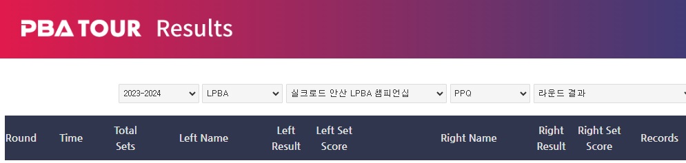 실크로드 안산 LPBA 투어 PPQ라운드 경기결과
