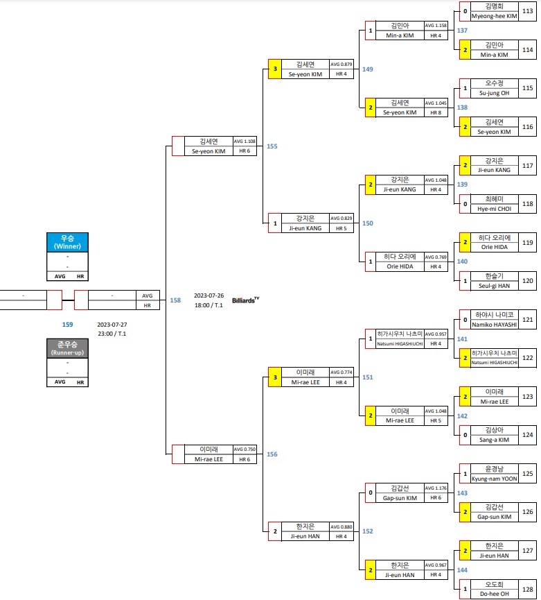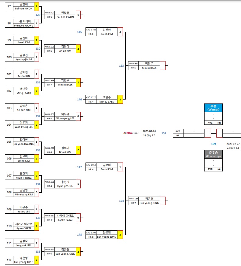 | 백민주 김세연 - 하나카드 LPBA 챔피언십 결승 대진표 (0) | 2023.07.26 |
