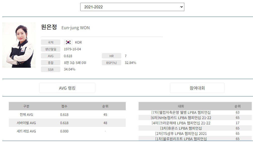 사실 저도 여자 당구선수 가운데 원은정 선수가 있는지도 잘 몰랐습니다. 원은정 선수에게는 죄송한 일이지만 그 만큼 원은정 선수가 그동안 LPBA 프로당구 무대에서 두드러진 경기 성적을 올리지 못했기 때문일 것입니다.