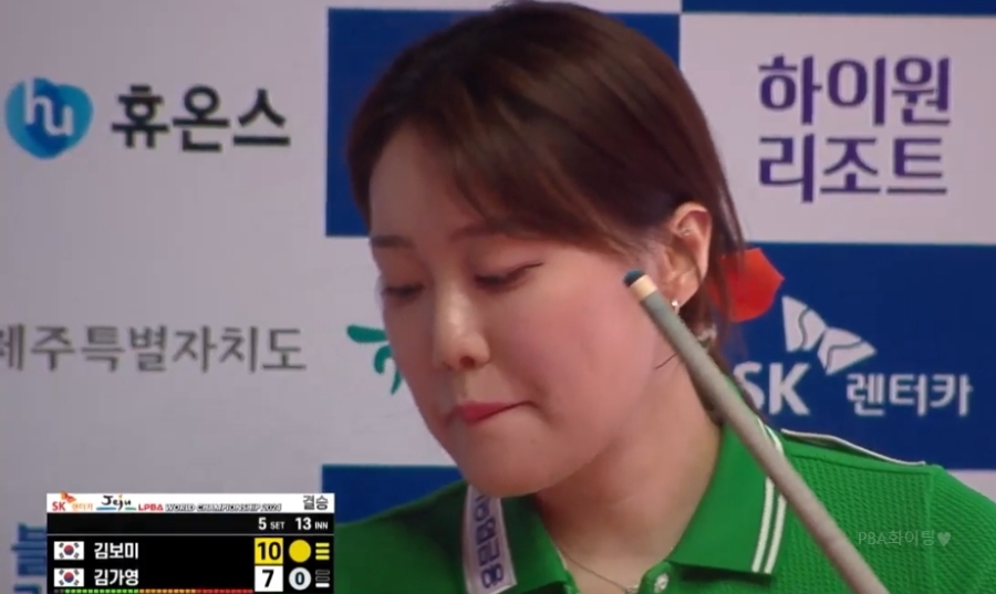 마지막 7세트는 김가영이 승리했던 1세트처럼 김가영에게 유리하게 술술 풀렸습니다. 2점을 남긴 상황에서 2득점 뱅크샷 기회를 놓치지 않았습니다.