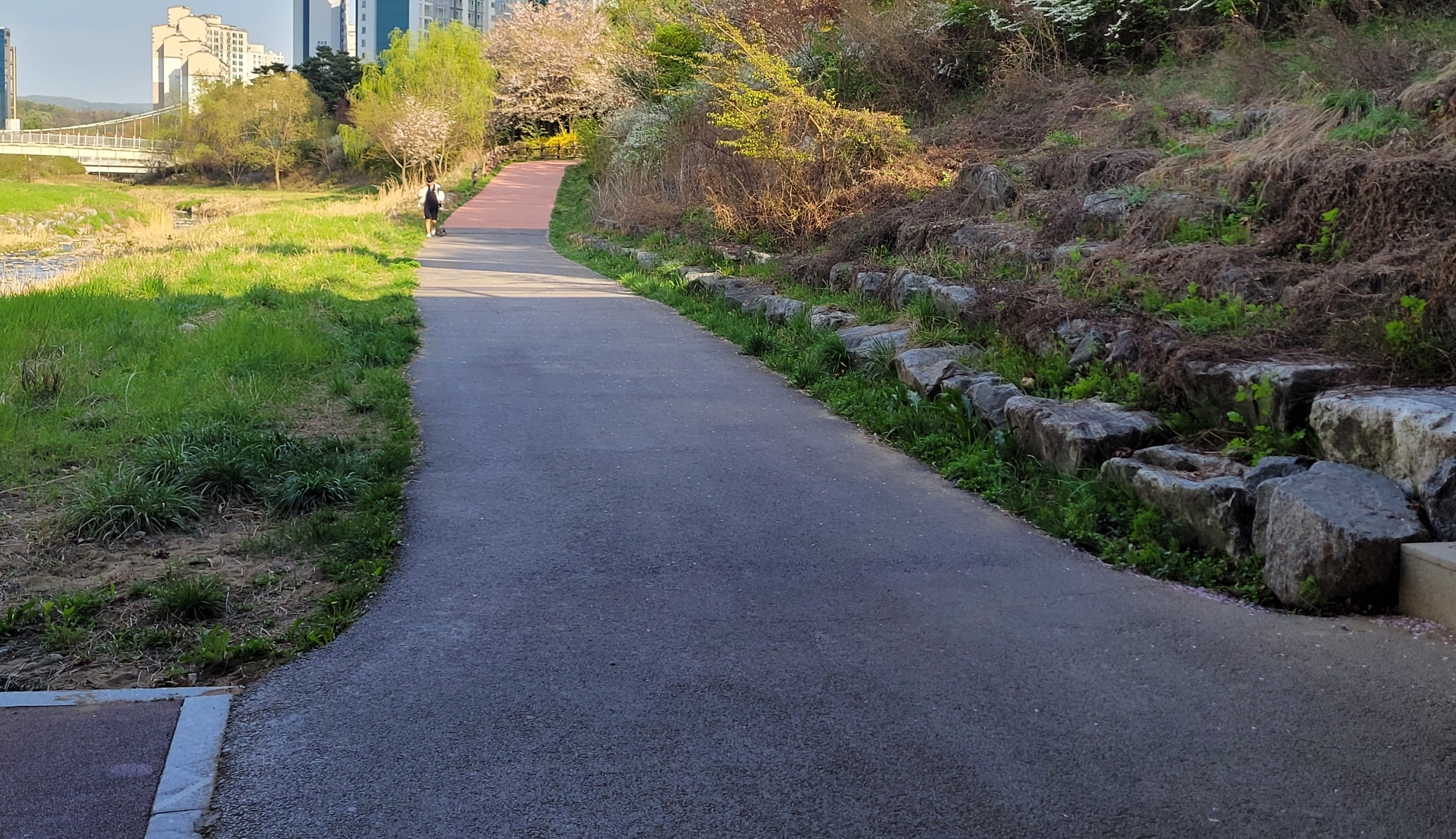 산책로의 다리 아래에서 좌우측 왕복으로