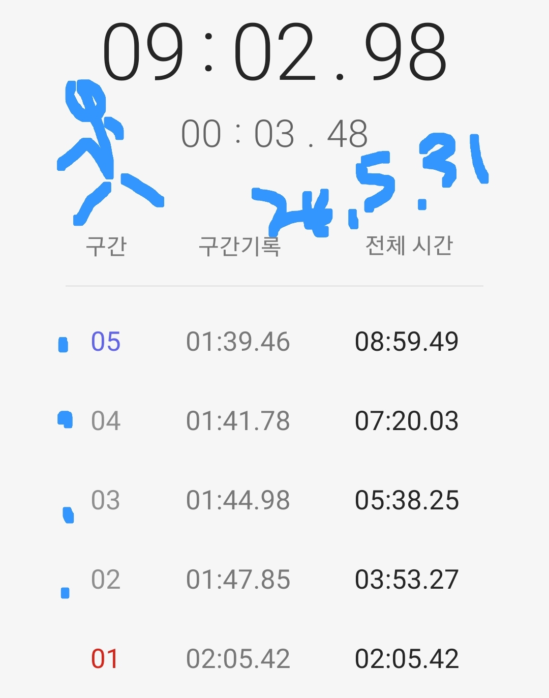 거리를 몰라도 같은 거리에서 실시한 랩타임이