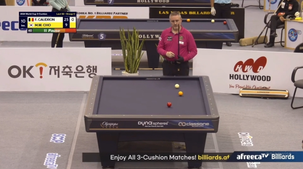 쿠드롱은 16강 전에서 32강 예선전에 이어서 다시 조명우를 만났으나 50:41로 승리하였습니다.