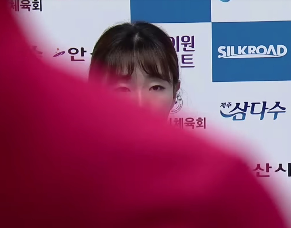 자리에 앉아 그런 고민을 하던 김보라 선수는자기 차례가 되자 벌떡 일어나 자신의 수구인 힌 공을 노려보았습니다.