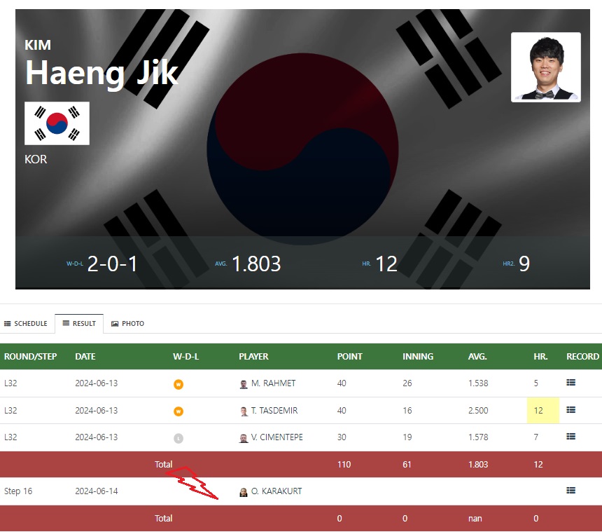 | 김행직 경기결과 - 2024 앙카라 세계 3쿠션 당구 월드컵 (0) | 2024.06.15 |
