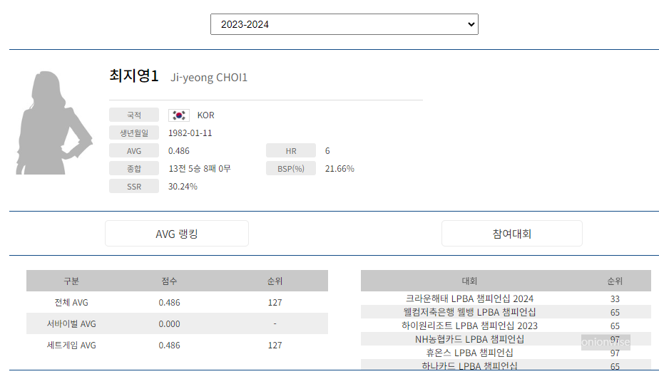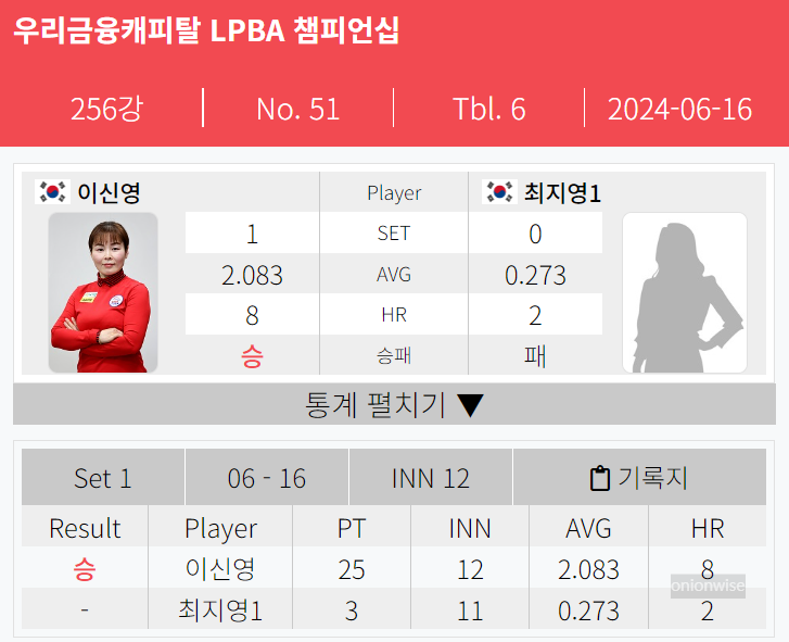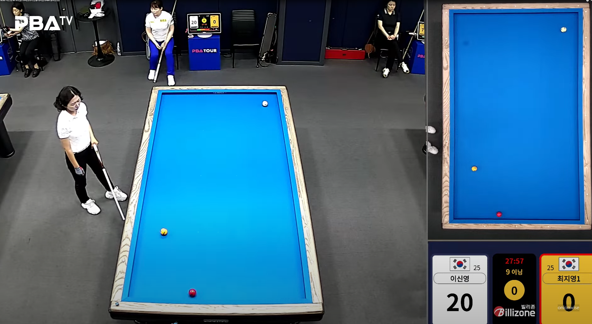 반면 아직 LPBA 경험이 부족한 최지영 당구선수는 애버리지 0.273, 하이런 2득점을 기록하면서 프로 당구선수로서는 많이 미흡한 기록을 보였습니다.