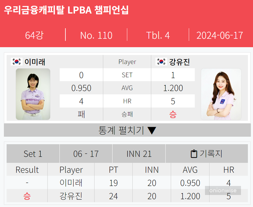 ■ 강유진 이미래 lpba챔피언십 64강 경기결과 상세 기록