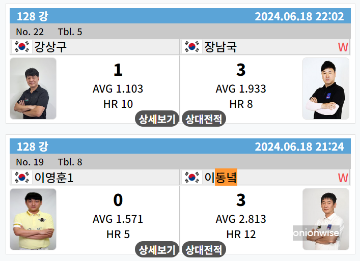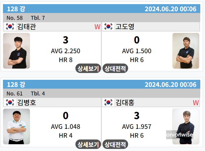 1. 우리금융캐피탈 PBA 챔피언십 128강 경기결과