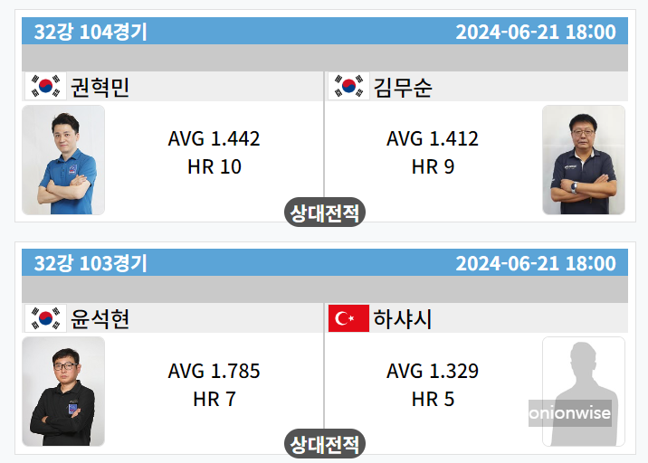 - 64강 경기결과 애버리지 3.214로 랭킹 1위는 : 김종원