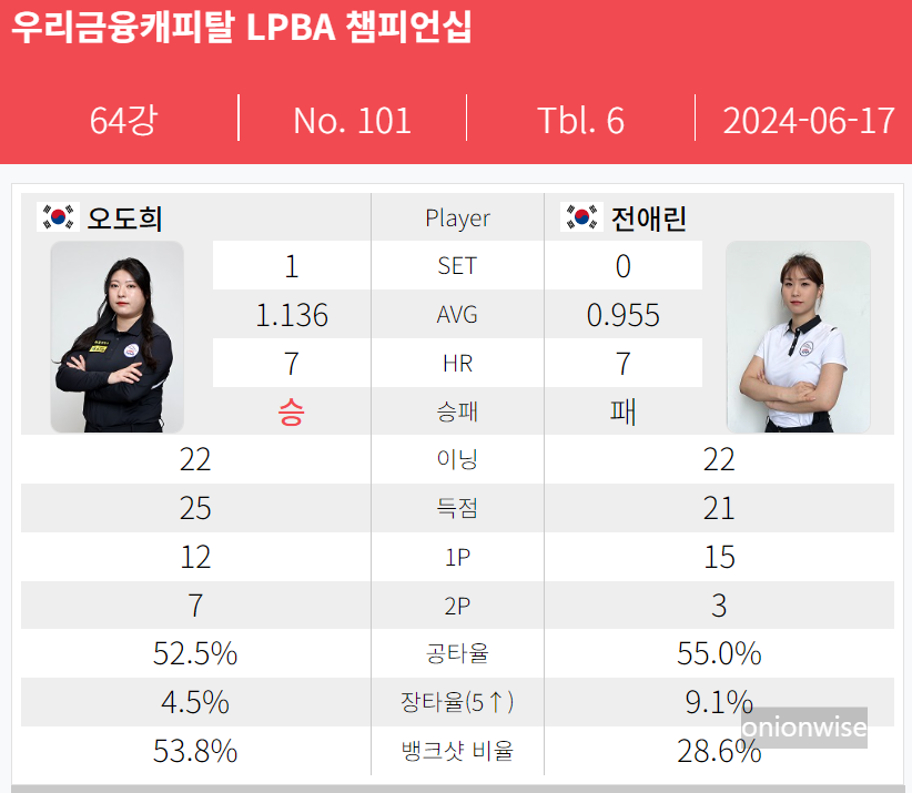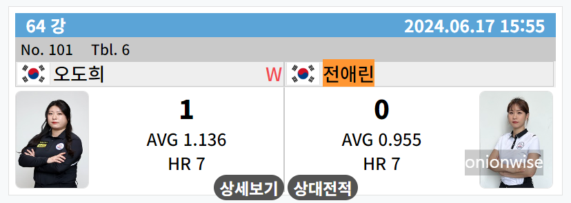 전애린 오도희 LPBA투어 64강 경기결과
